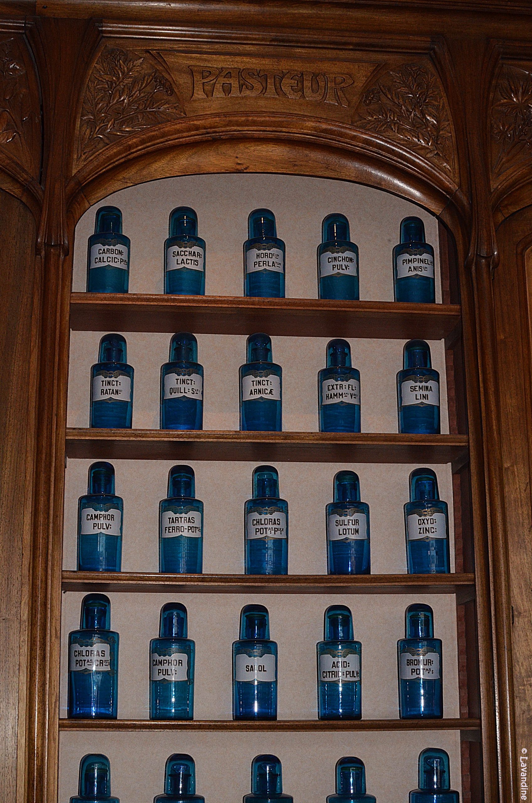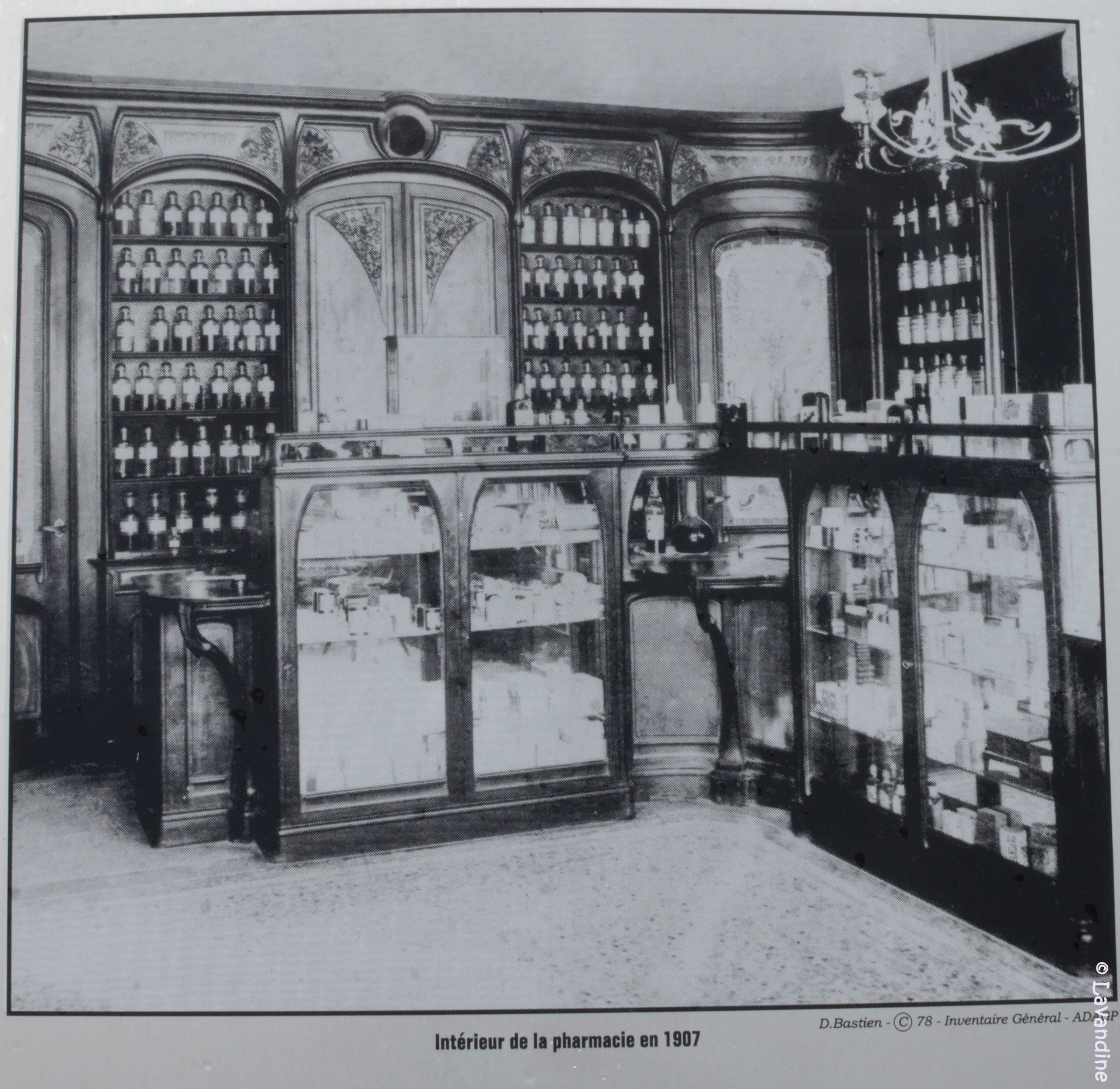 J’aime beaucoup l’intérieur de la pharmacie, avec des fioles de lotions alignées sur les étagères !