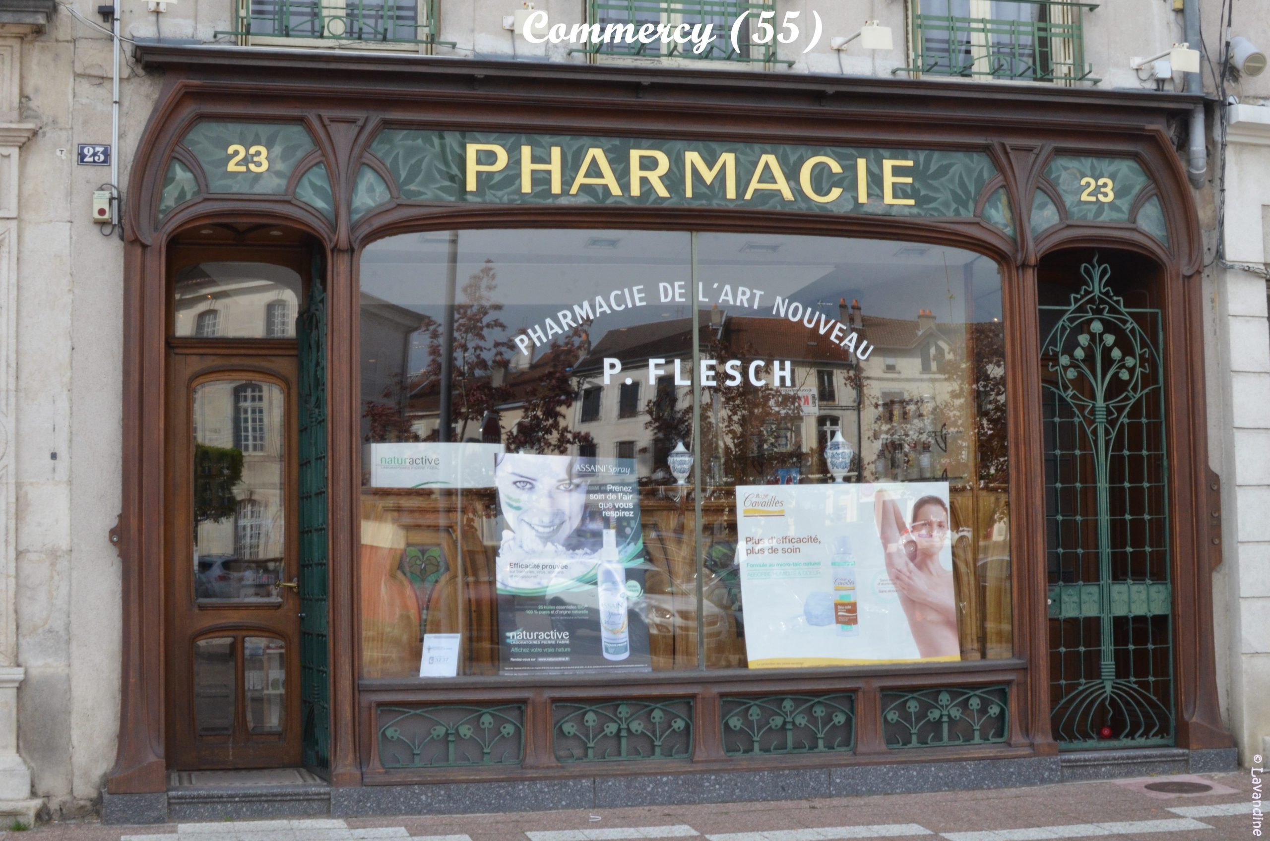 La devanture de la pharmacie de Commercy est particulièrement belle et l’intérieur tout à fait superbe!