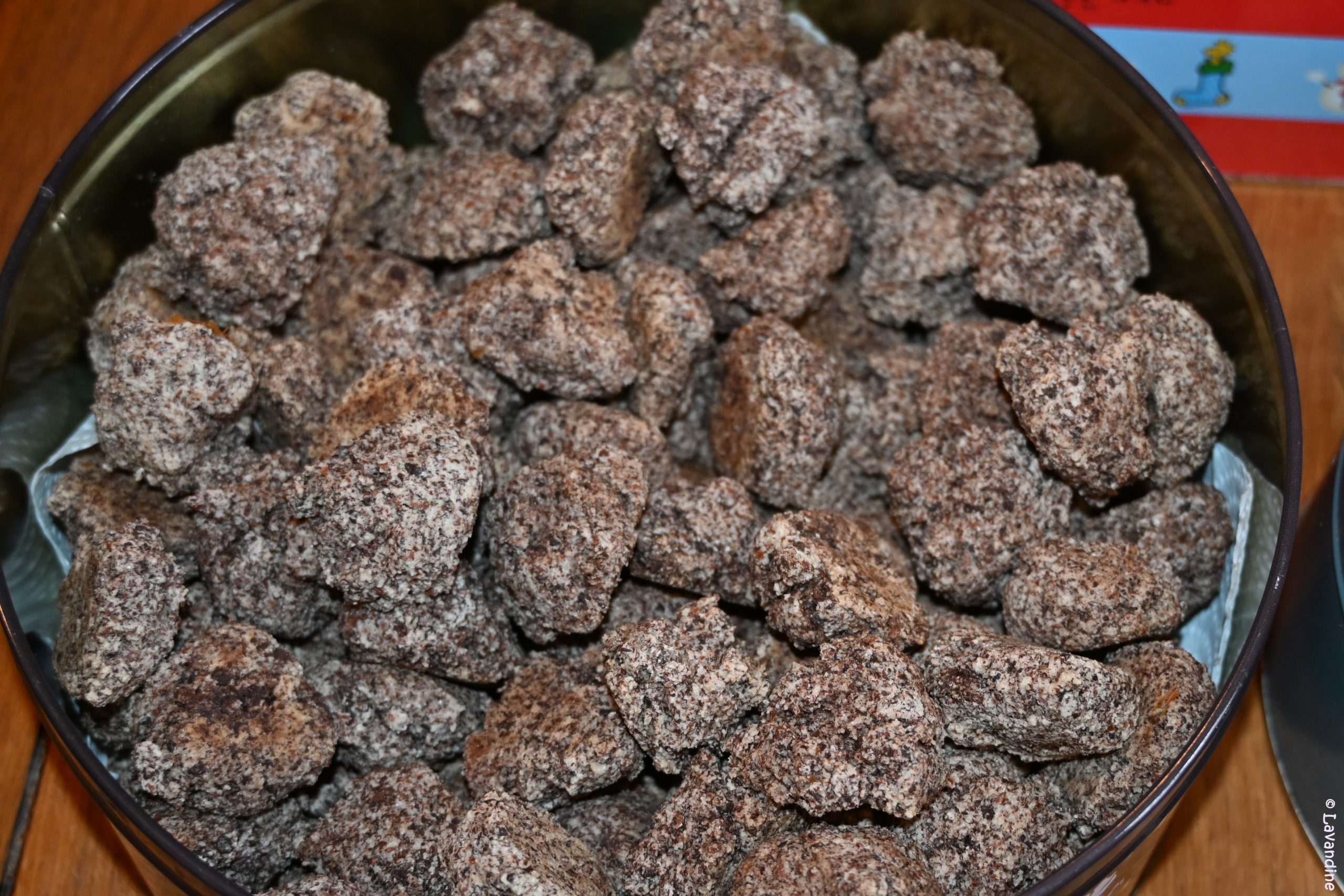 La production de bredele est terminée. Il ne me reste plus qu’à faire les truffes au chocolat, le stolle et les biscuits américains ( voilà ce qui arrive quand on regarde les films de Noël !!). Pas d’envoi cette année. On livre ….