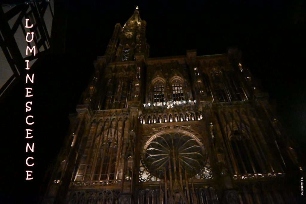 En ce qui concerne l’article du jour, vous allez voir des photos d’un spectacle où nous avons été jeudi dernier à la cathédrale Notre-Dame de Strasbourg, intitulé LUMINISCENCE. La nef de la vieille dame s’est illuminée pour fêter ses 750 ans.